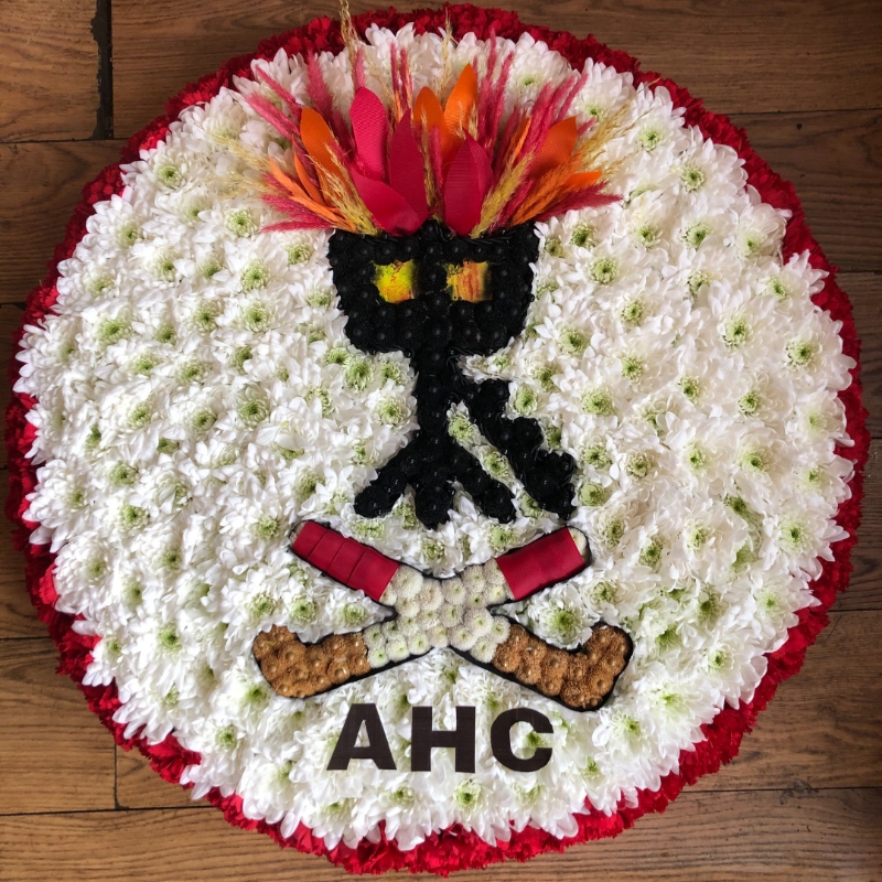 Our bespoke sports badge tributes can be created as a personal tribute of past hobbies and activities. These individual tributes can created by one of our in house skilled florists from a photo or sketch.